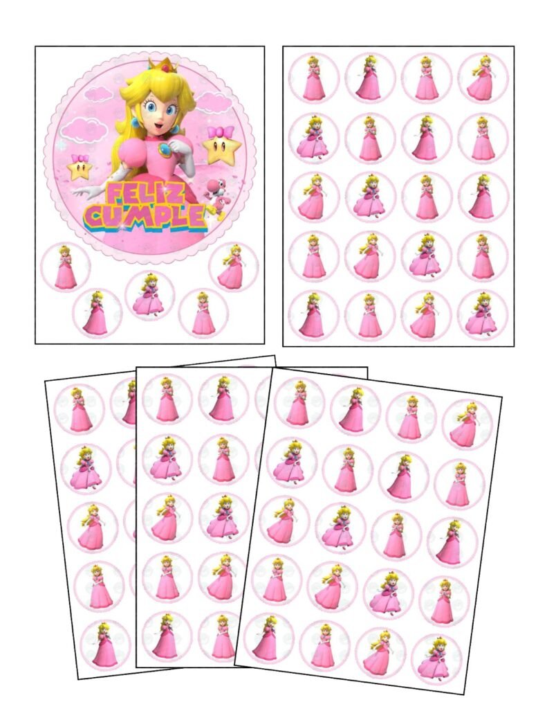 | Transfer para Gelatina de Mario Bros pack de 5 hojas con 86 círculos modelo dos |